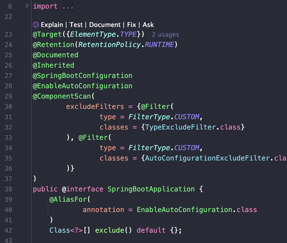 Spring Boot의 @SpringBootApplication 어노테이션은 @EnableAutoConfiguration, @ComponentScan, @Configuration을 포함하고 있다.